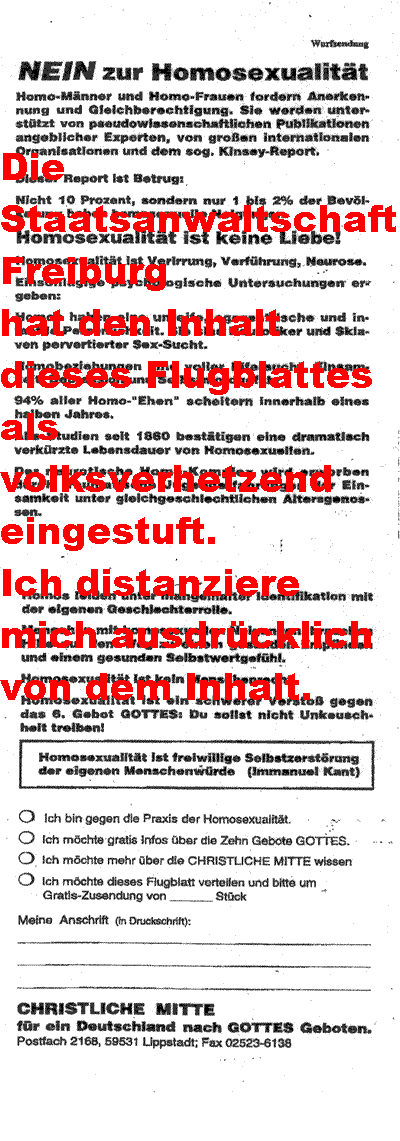 Die Staatsanwaltschaft Freiburg hat das Flugblatt der "Christlichen