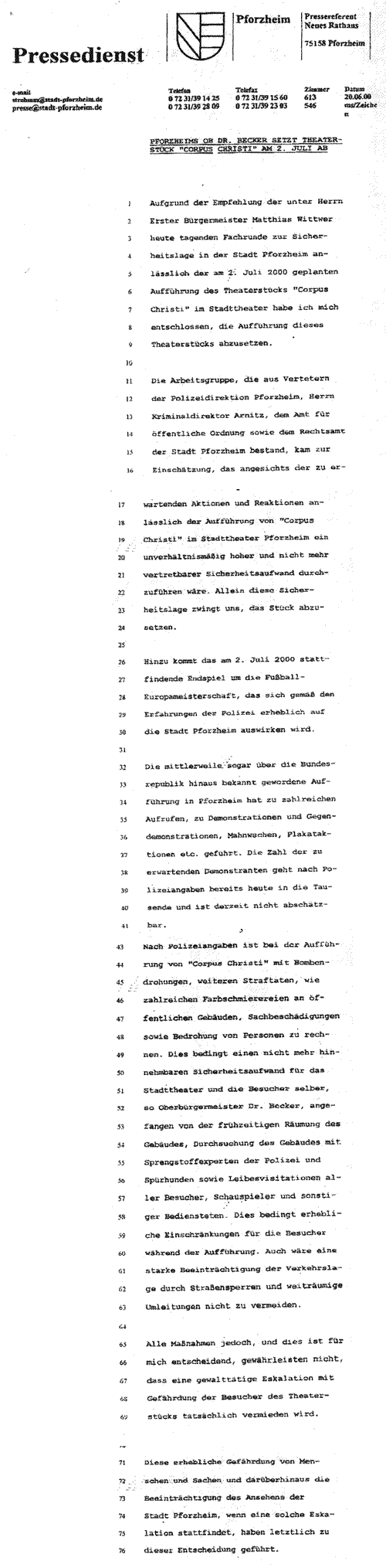 Gestern kam die Auseinandersetzung um "Corpus Christi"