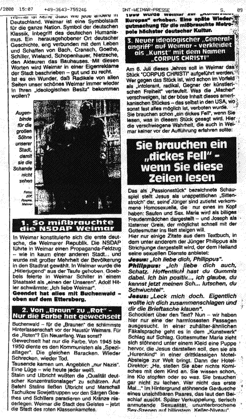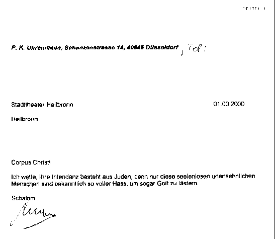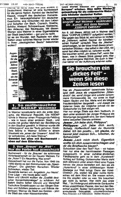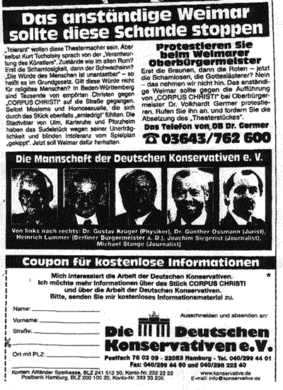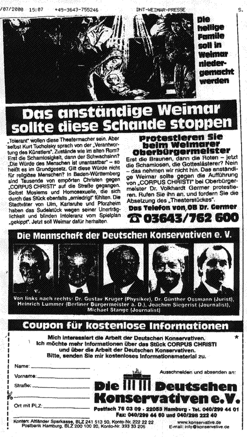 seinerzeit bei den Protesten gegen das Stück "Corpus